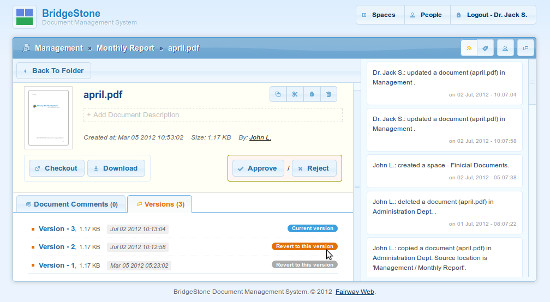 - The DMS will record all the information about changes on a specific document.